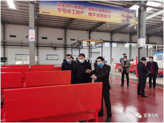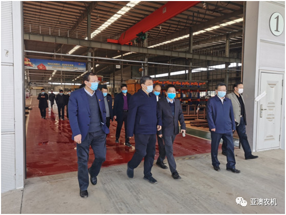 霍好勝一行在亞澳農(nóng)機(jī)調(diào)研與公司總經(jīng)理史炳哲進(jìn)行深入交流,詳細(xì)了解疫情防控、復(fù)工進(jìn)度和遇到的困難等問題,并深入生產(chǎn)區(qū)一線現(xiàn)場查看企業(yè)的生產(chǎn)狀況。