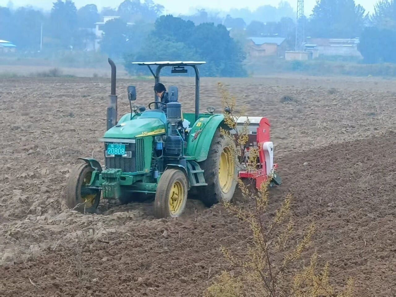 在百公里外的銅川市耀州區(qū)小丘鎮(zhèn)中原村,亞澳農(nóng)機同樣成為搶種主力。“播種期推遲了近十天,土壤又濕,最怕播深不均和倒伏。”農(nóng)機手操控著亞澳寬幅溝播機穿梭田間,機具搭載的指夾式排種器實現(xiàn)精準下種,配合可調(diào)節(jié)播深系統(tǒng),將播種深度嚴格控制在2—4cm的最佳范圍,既滿足銅川市農(nóng)機推廣站副站長姚關(guān)盈提出的“淺播搶積溫”要求,又通過均勻播種避免了“播量過大易倒伏”的風(fēng)險。截至目前,銅川市已調(diào)度1600余臺套農(nóng)機投入秋播,亞澳機具憑借“旋耕、播種、施肥一體化”優(yōu)勢,大幅提升了濕墑地塊的作業(yè)效率,助力農(nóng)戶把延誤的農(nóng)時搶回來。