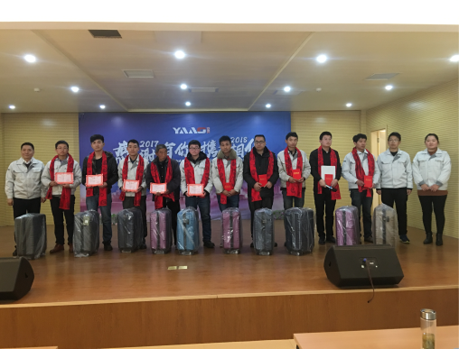 年度先進個人獲得者為石強、陳朝龍、王文飛、王欣、楊常林、寧浩、鄭新春、田生文、白拴禮、趙自學,優秀班組長周長金,獎品Aksen旅行箱