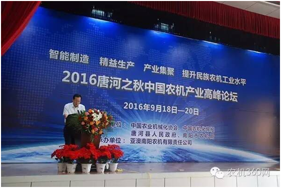 9月20日,由中國農業機械化協會、《中國農機化導報》、河南省唐河縣政府和南陽市農機局共同主辦,亞澳南陽農機有限責任公司承辦的2016唐河之秋中國農機產業高峰論壇在河南省唐河縣舉行。全國各地農機生產企業、當地經銷商以及媒體代表共200多人參加了此次論壇。